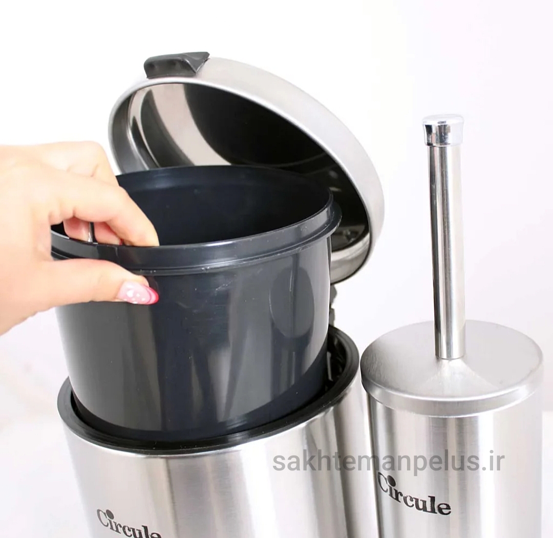 ابعاد: ابعاد سطل زباله ۱۸×۲۰×۲۵ // ابعاد فرچه ۱۰×۱۰×۳۸ سانتی متر