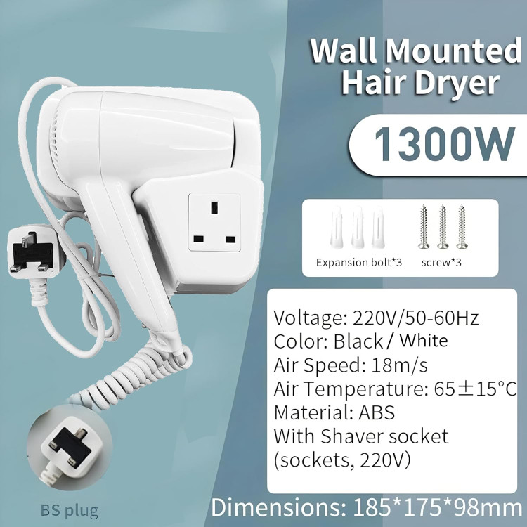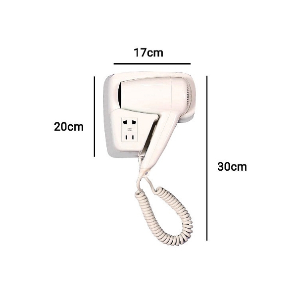 سشوار دیواری هتلی 1300 وات با سوکت برق روی بدنه