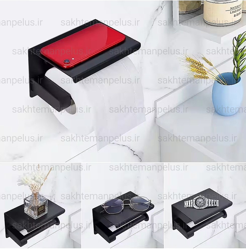 جای دستمال توالت بهمراه نگهدارنده موبایل استیل 304 ضد زنگ
